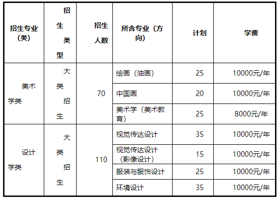 注:校考专业将按美术学类、设计学类两个大类招生,考生不得兼报。入校后根据校考成绩与志愿相结合的原则按照相应的计划数进入到相应专业学习。影像设计专业方向学生须自备数码单反相机。